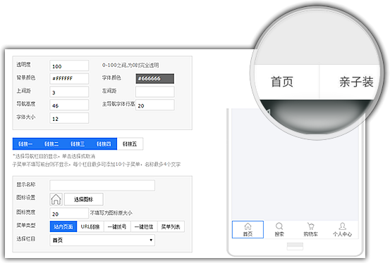 手機網(wǎng)站自定義底部導航鏈接,方便快捷