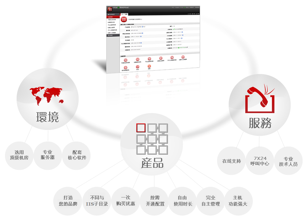 我們支持windows 2003 / windows 2008 / CentOS等不同的操作系統,專業軟件則自行開發,我們有強大的技術開發實力,在同行業一直處于領先地位。