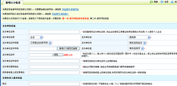 若果您從來沒有申請過網(wǎng)站備案,請選擇“新申請備案”,選擇之后進(jìn)入后如下圖: