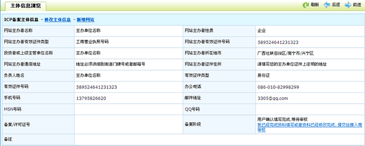 可以查看已經(jīng)提交的備案的網(wǎng)站所有者信息、新增網(wǎng)站等。現(xiàn)在備案階段是, 用戶確認(rèn)填寫完成,等待審核